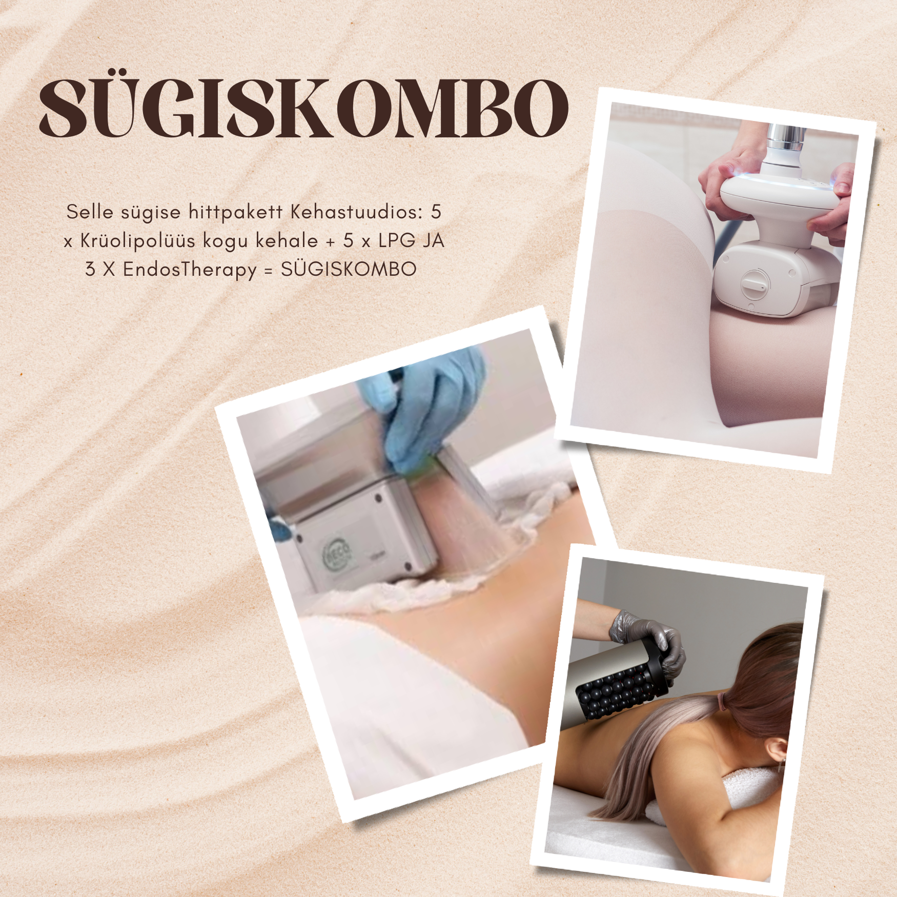 Selle sügise hittpakett Kehastuudios: 5 x Krüolipolüüs kogu kehale +  5 x LPG JA 3 X EndosTherapy = SÜGISKOMBO
